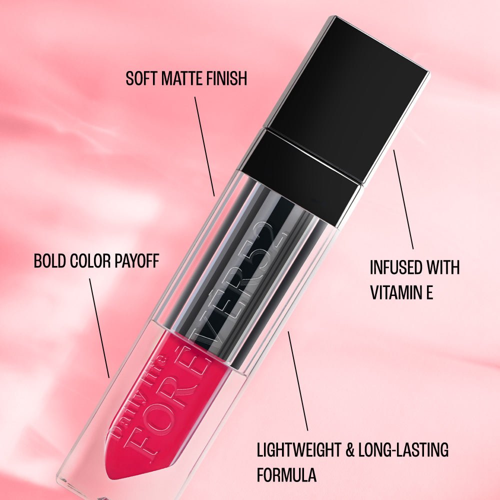 Turn heads with intense color payoff and a soft matte finish that lasts all day. Forever52 Matte Liquid Lipstick glides effortlessly in just one swipe, delivering vibrant, bold shades that feel as good as they look. Infused with Vitamin E for added nourishment, its lightweight, non-drying formula keeps your lips looking fresh and flawless from morning to night.