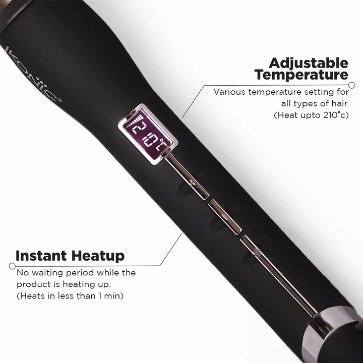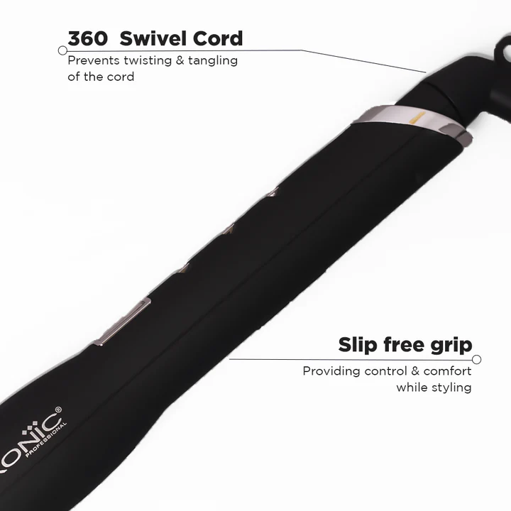 Keep your hair game strong with this all-rounder professional hair curler that effortlessly creates bouncy curls or beachy waves. It features a 360-degree swivel cord that ensures wires do not get tangled and this acts as a safety feature as well. Also, it has got an LCD screen and temperature control that allow you to.