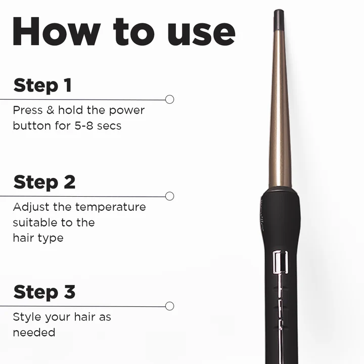 The conical curling wand gives you total control and flexibility to express your creative flair. Simply