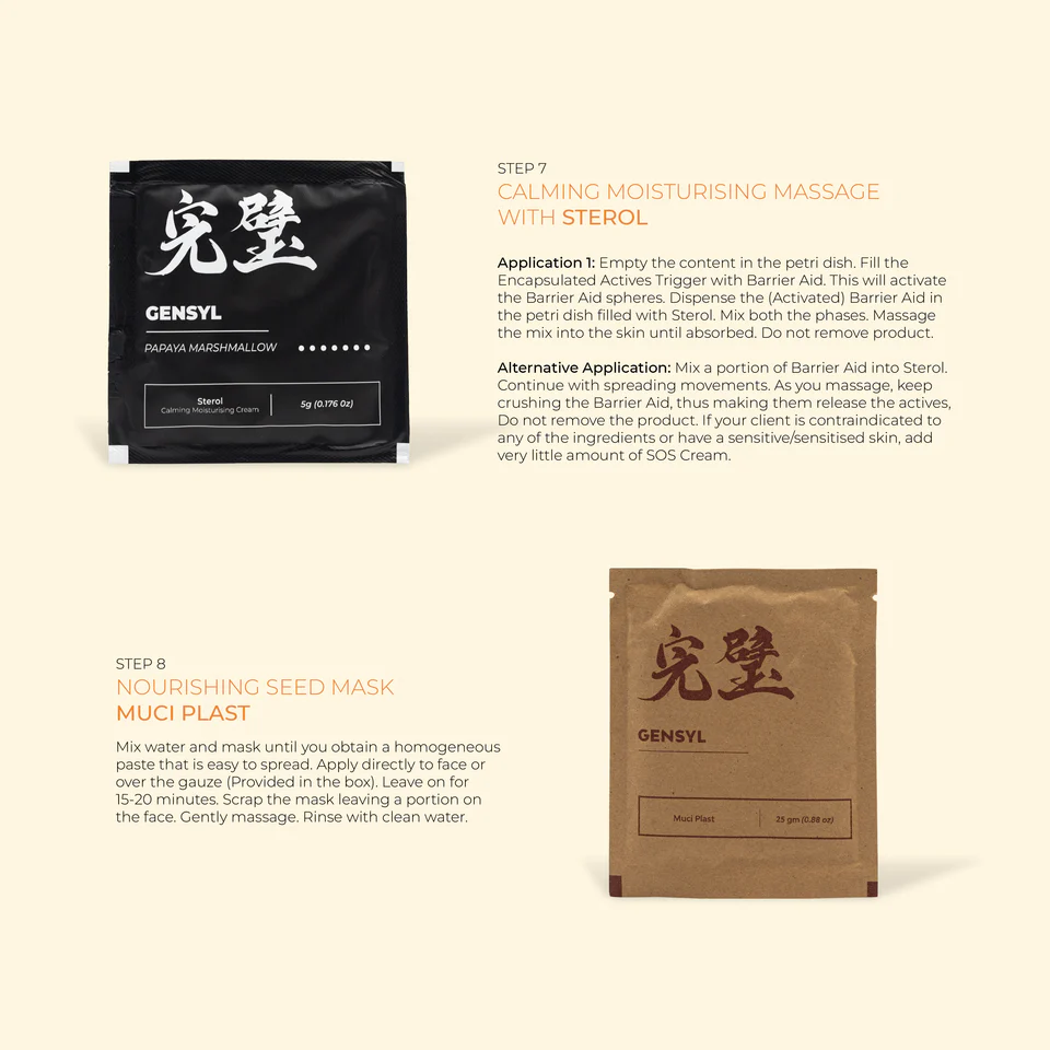 This calming organic facial uses restorative enzymes to deeply soothe and nourish the skin. It helps support and restore both fragile and sensitive skin. The deeply hydrating seed facial mask is powered by seeds known for repairing the skin’s functional barrier and preventing moisture loss. A balm with oils of Marshmallow and soothing Papaya microcapsules herbs help to repair and nourish the skin.