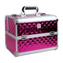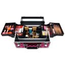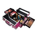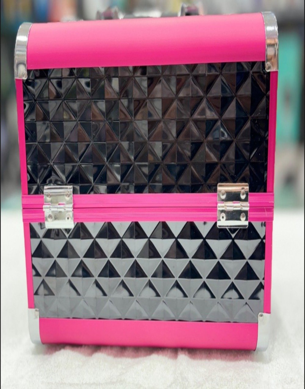 Aluminium Cardboard Plastic- Lightweight, waterproof, durable, easy to clean makeup case, Extra-large cosmetic bag, elegant and stylish; Double-layer design, lock closure. A sturdy carry handle adds convenience to the cosmetic organiser.