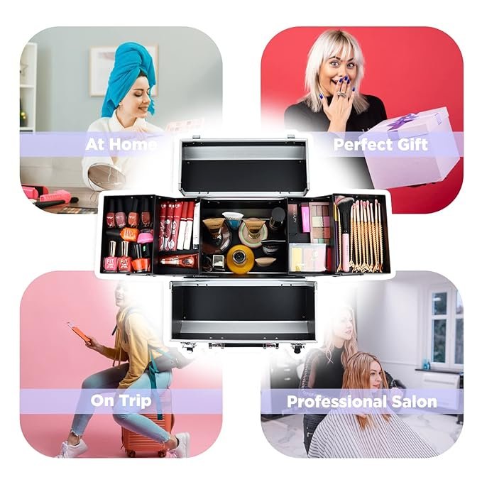 Multifunction: This makeup organiser case is not only can storage your makeup & cosmetic items, but also Jewellery, Shampoo, Conditioner, Hair dryer, Electronic Accessories, Camera, and Toiletries.