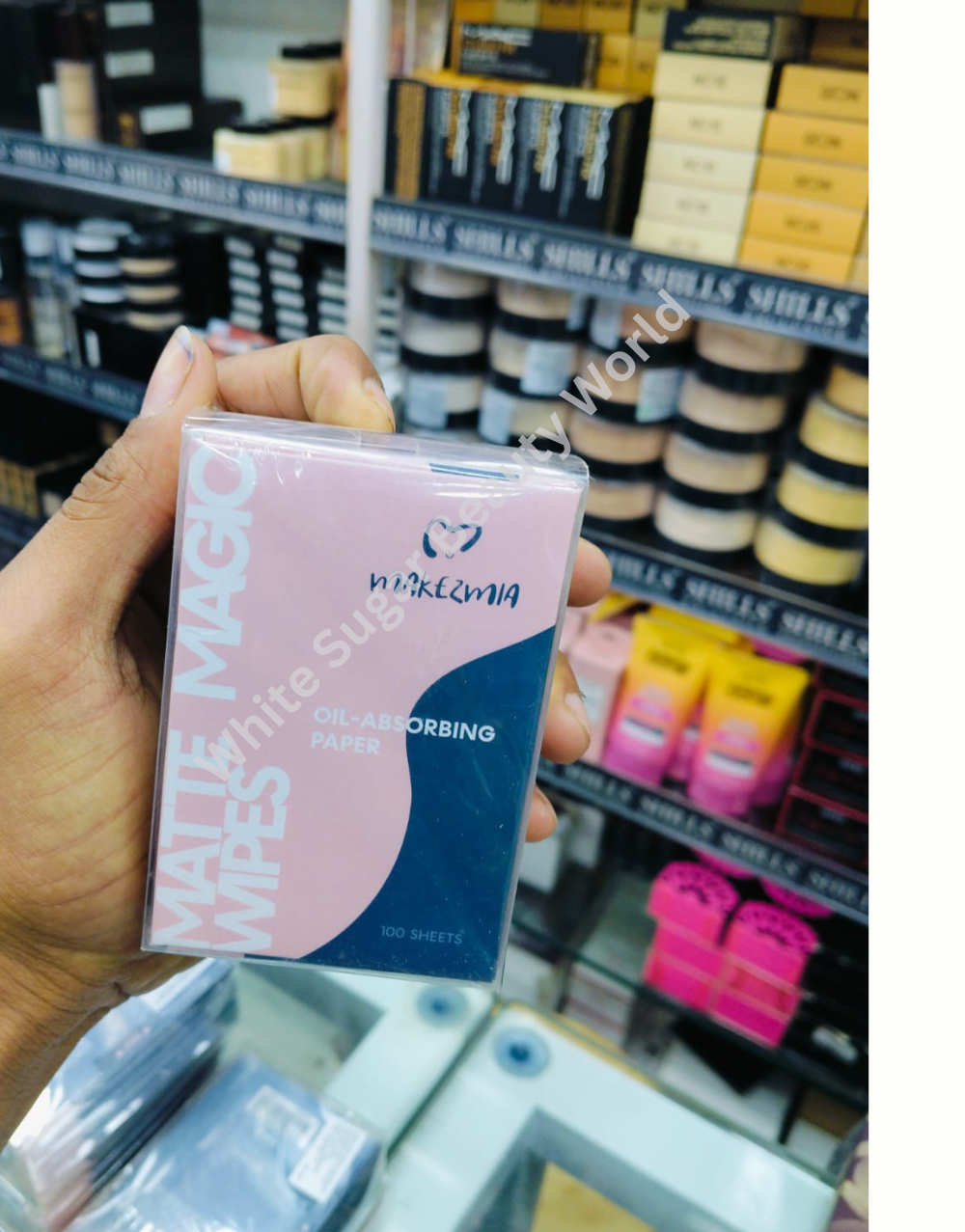 Makezmia Magic Matte Wipes are specially designed to instantly absorb excess oil and sweat without disturbing your makeup. These ultra-light, soft wipes help control shine and leave your skin looking fresh, matte, and smooth throughout the day.