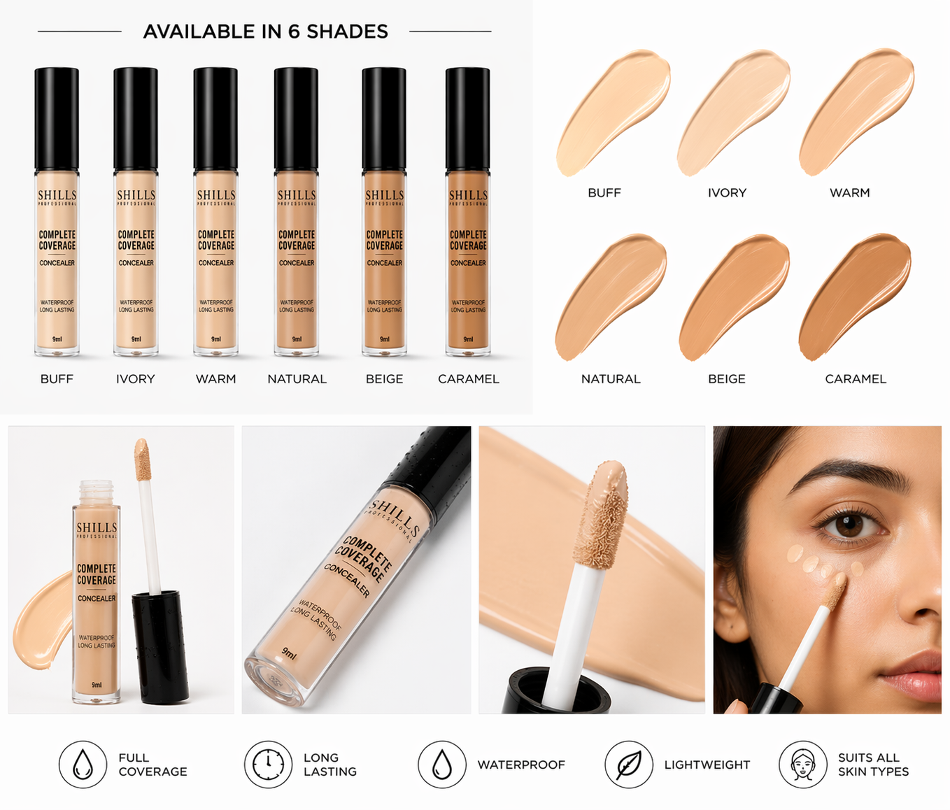 The Shills Exclusive Complete Coverage Liquid Concealer is a versatile product designed to effectively