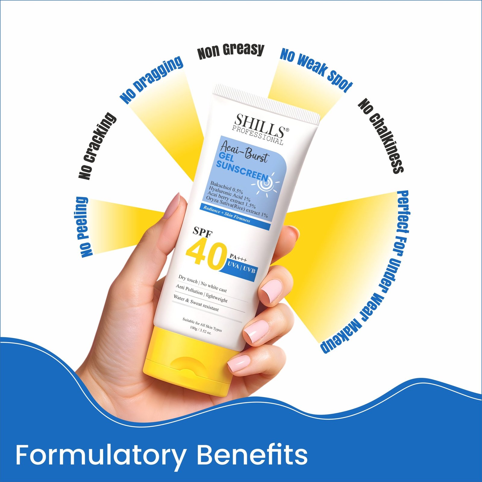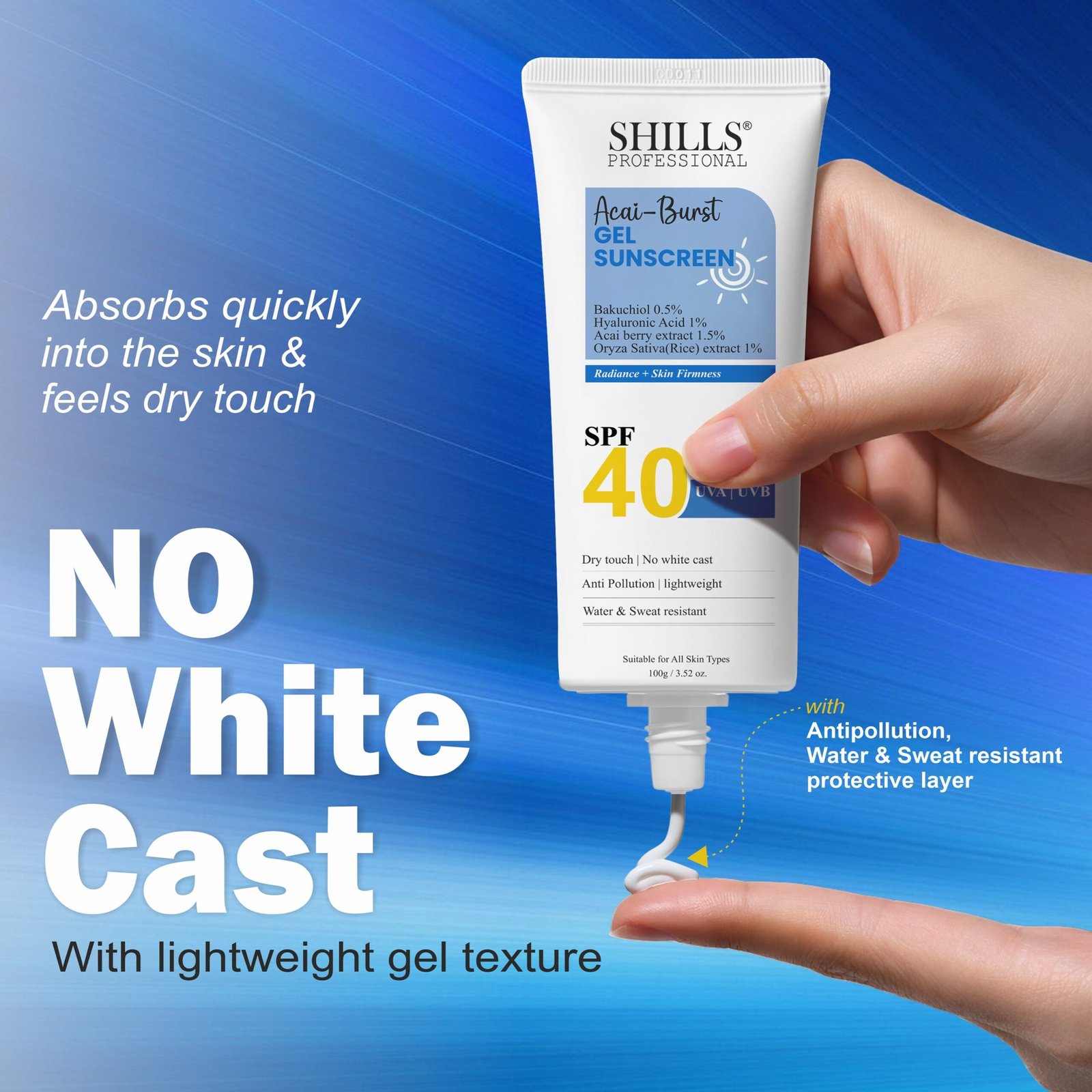 Shills Professional Acai-Burst Gel Sunscreen SPF 40 PA+++ | 100g
