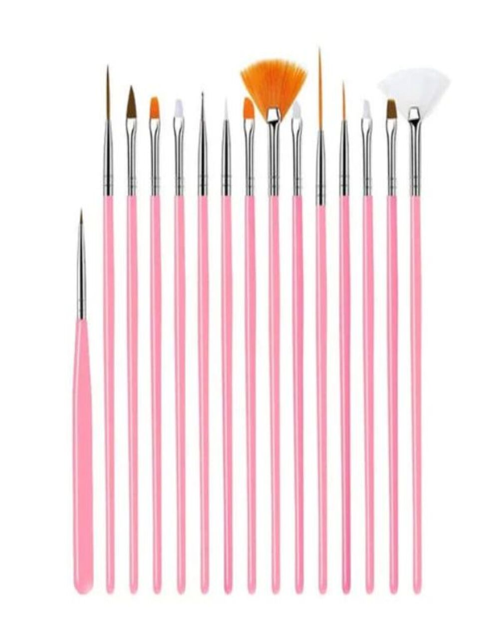 Shills Professional Nail Art Brush Set – Pink 15Pcs