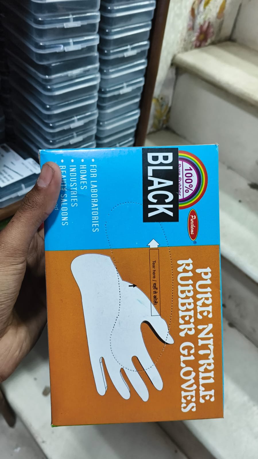 Purchems Pure Nitrile Latex Rubber Gloves For Hair Coloring-Black